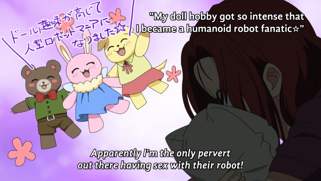 It’s the only short I watched this season, and it’s none other than an adaptation of a Yuri Hime android sex comedy! Having read the manga, I was absolutely shocked this was getting an adaptation. Of course, as is the fate of most Yuri Hime android sex comedies, the episodes are only five minutes and barely scrape into the actual plot. That’s probably fine for this one, given how bizarre the story gets. It does make me fear if Asumi-chan is Interested in Lesbian Brothels ever gets an anime, it’ll see the same treatment. Asumi-chan is Interested in Lesbian Brothels deserves better. Anyway, while it’s low budget, this adaptation is put together well enough to capture the mood of the manga. Is there any substance? Absolutely not! Are there substances? You know it!