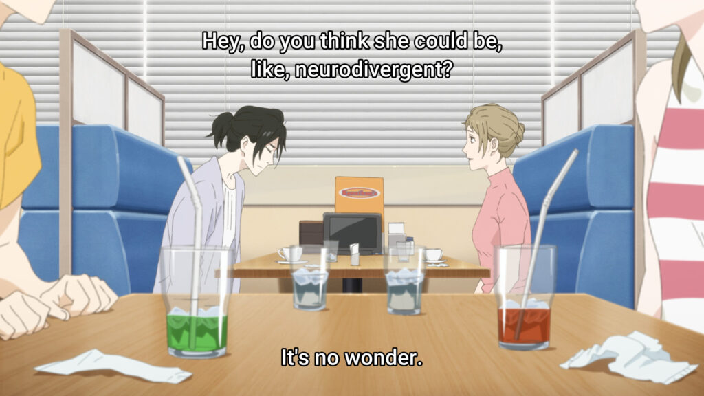 This feels like a series that was designed to win awards. Coming of age? Check. Dealing with loss? Check. LGBT representation? Check. Characters who are supposed to be awkward around others constantly waxing poetic in conversation? You bet!!! I’m not necessarily against intentionally trying to write a prestigious story, but the problem with Journal with Witch is that outside a handful of nuggets of wisdom sprinkled throughout, it feels like it doesn’t really know what it wants to say. Every couple of episodes I thought they were really onto something, only for the next scene to unwind whatever they were building towards.